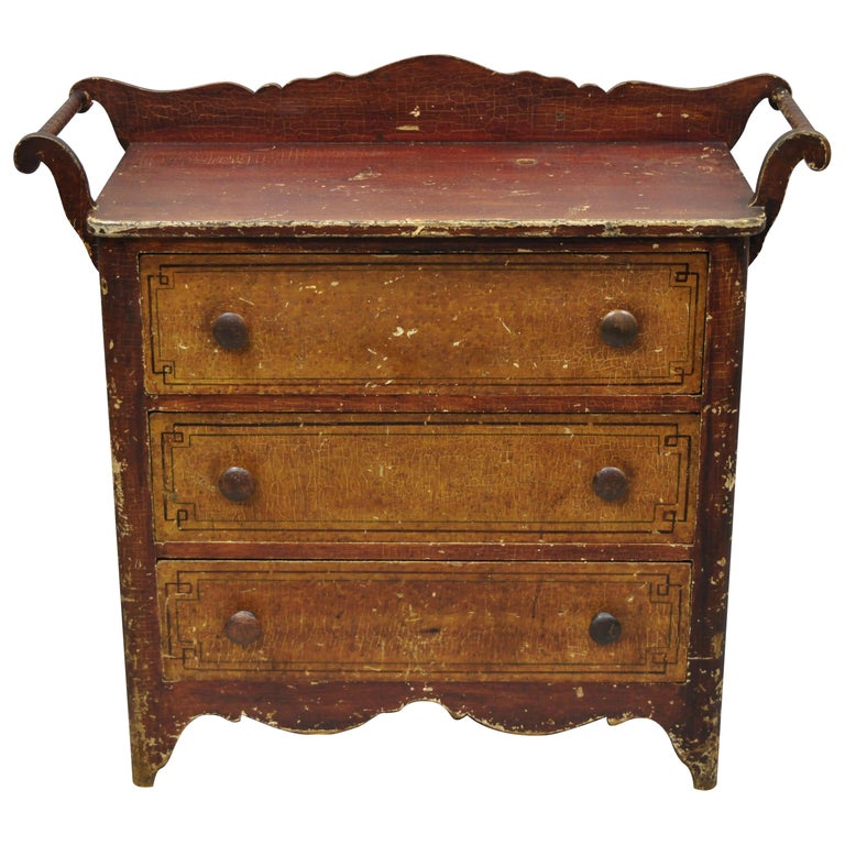 American Primitive Colonial Red Polychrome Painted 3-Drawer Washstand ...