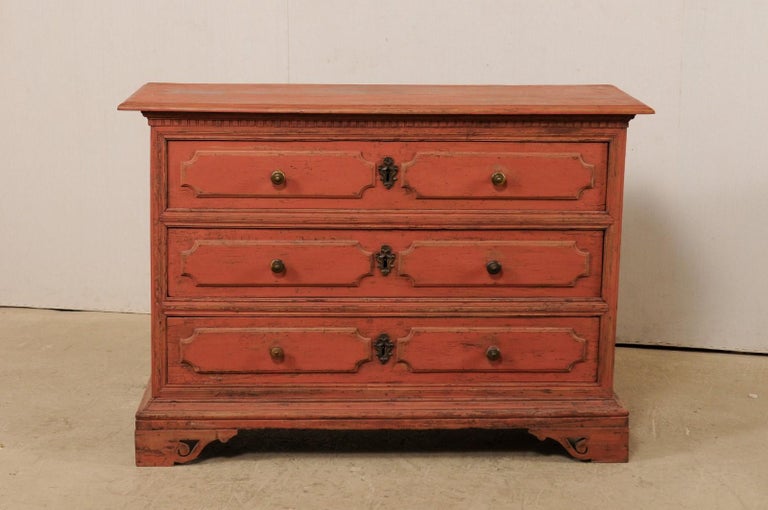 Antique Italian Commode of Three Graduated Drawers in Muted Red Color ...