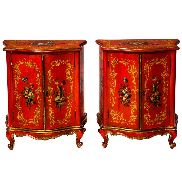 Rare Italian Sicilian Red Scarlet and Polychromed Rococo Style Commode ...