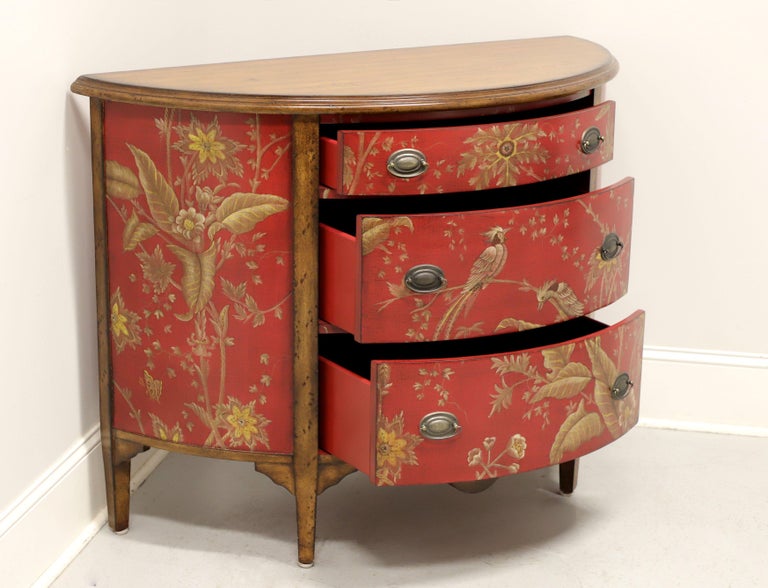 Late 20th Century Red Painted with Foliate and Avian Themes Demilune ...