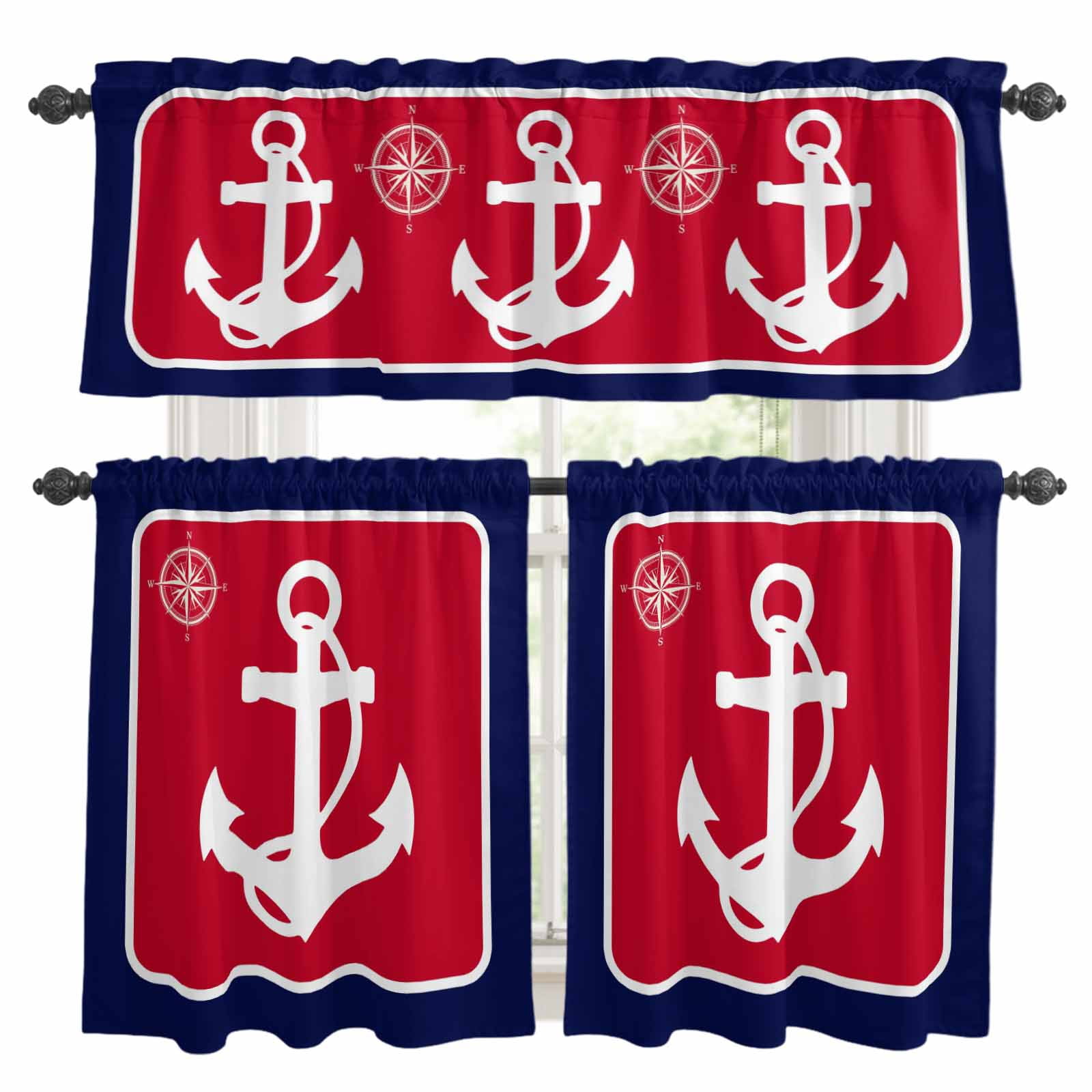 Anchor Kitchen Curtains Valances and Tiers Set of 3 Compass Nautical ...