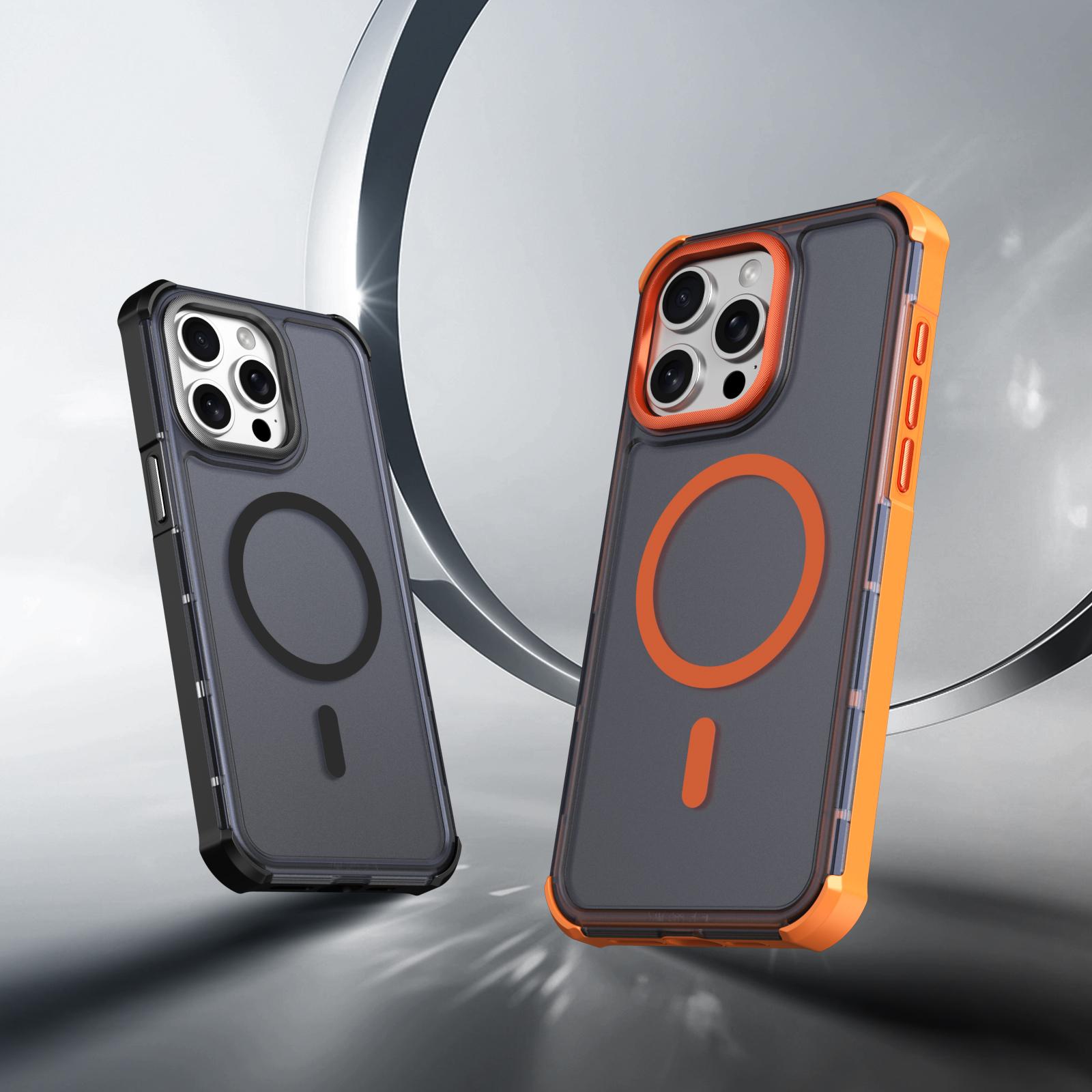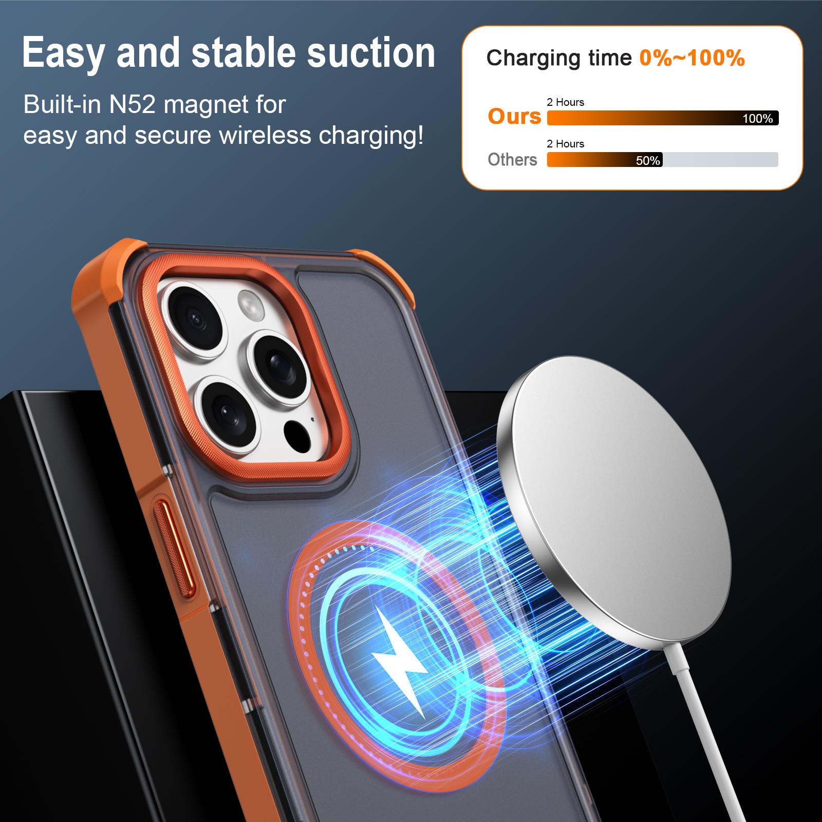 For iPhone 15 Pro Skin Feel Semi-transparent Frosted Magnetic Four ...