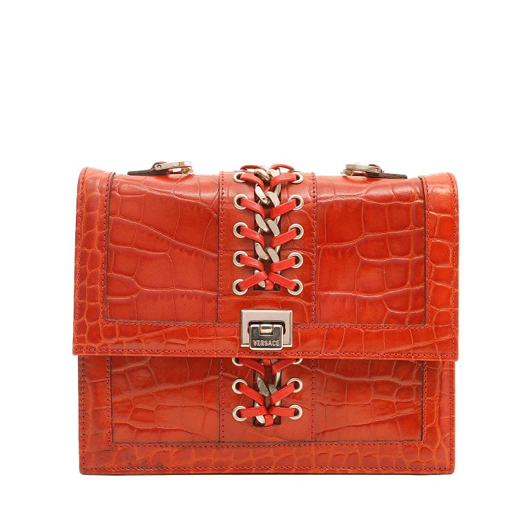 Versace Red Embossed Croc Evening Bag For Sale at 1stDibs