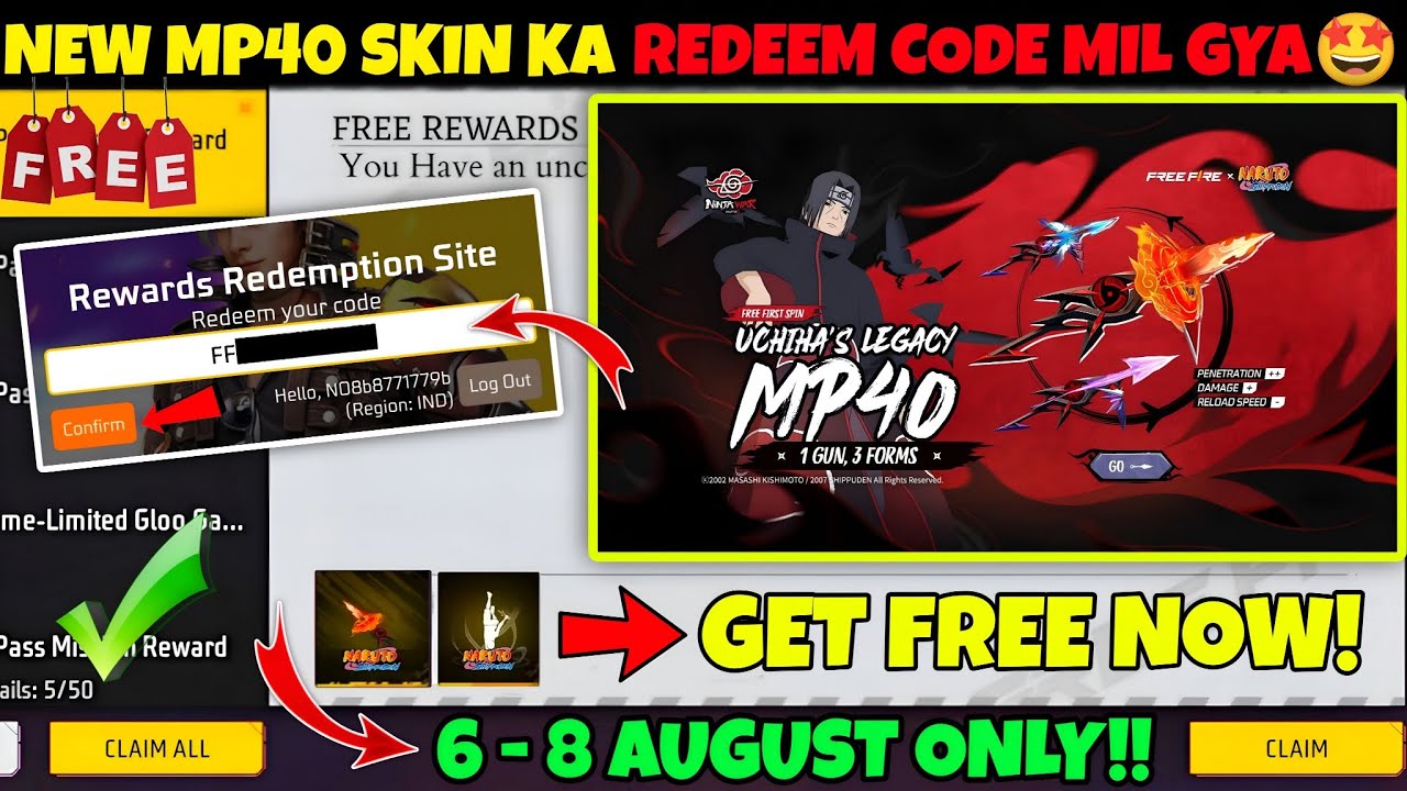 FREE FIRE REDEEM CODE TODAY 8 AUGUST | FF REWARDS REDEEM CODE | FF ...