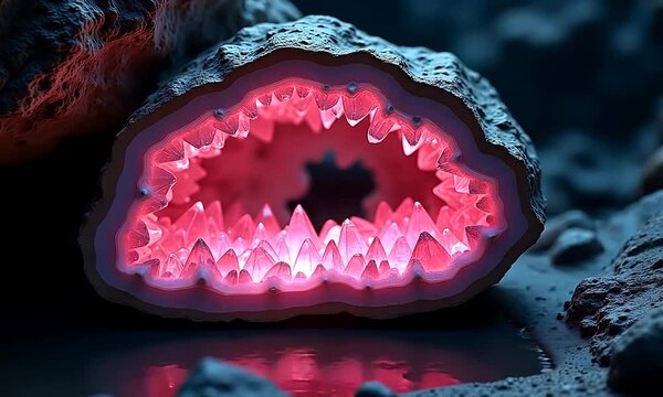 vibrant red geodes with sparkling crystal formations and contrasting ...