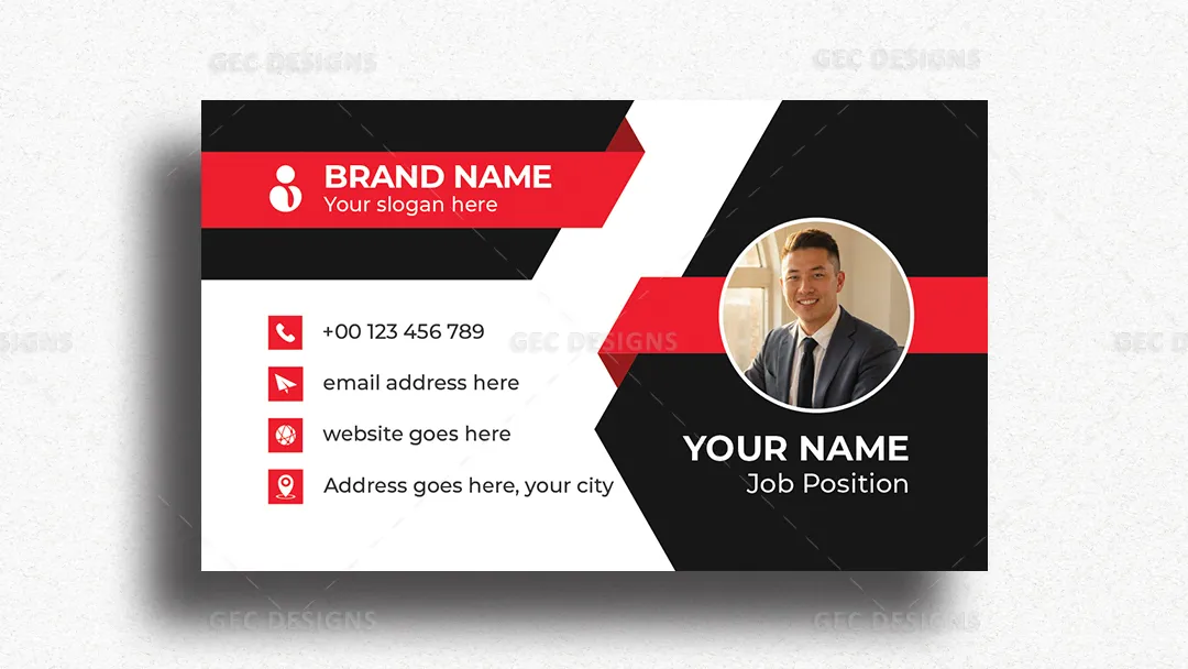 Business Card Template with Photo and Red Black Layout for Professional ...