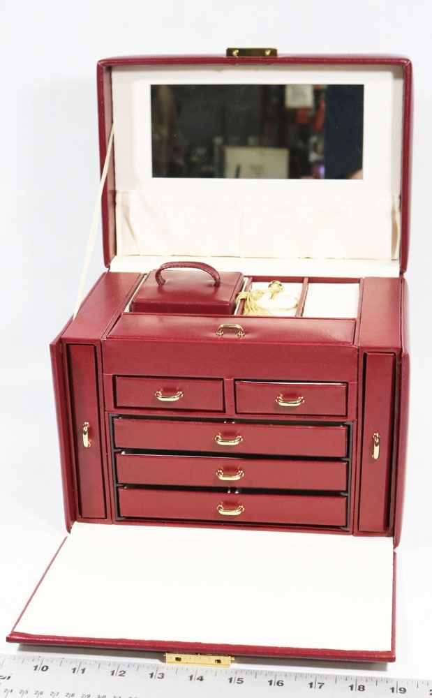 NEW RED LOCKABLE JEWELLERY BOX W/KEY,