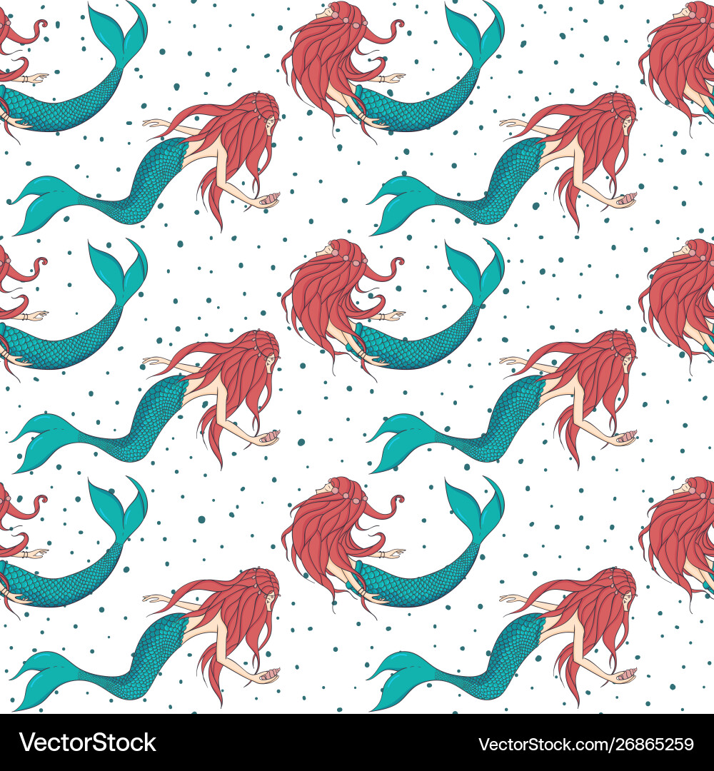 Beautiful red haired mermaids seamless pattern Vector Image