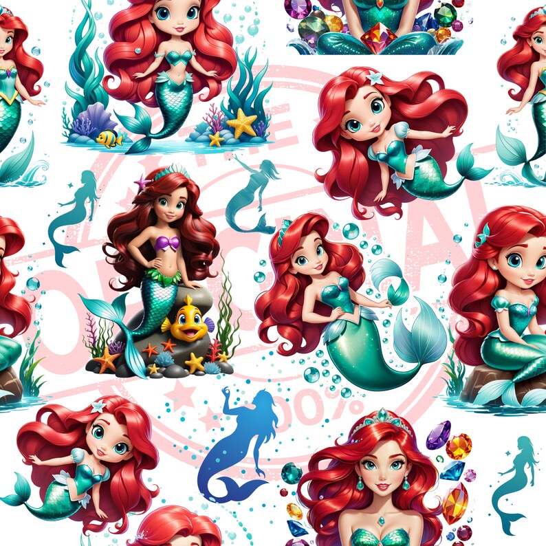Red Hair Mermaid Seamless Pattern: Printable Sublimation Projects (PNG ...