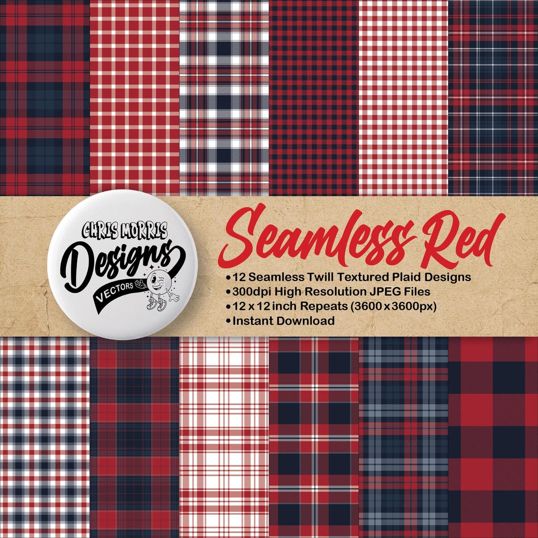 Seamless Red Plaid Check Patterns, Digital Paper Bundle, Assorted Pack ...