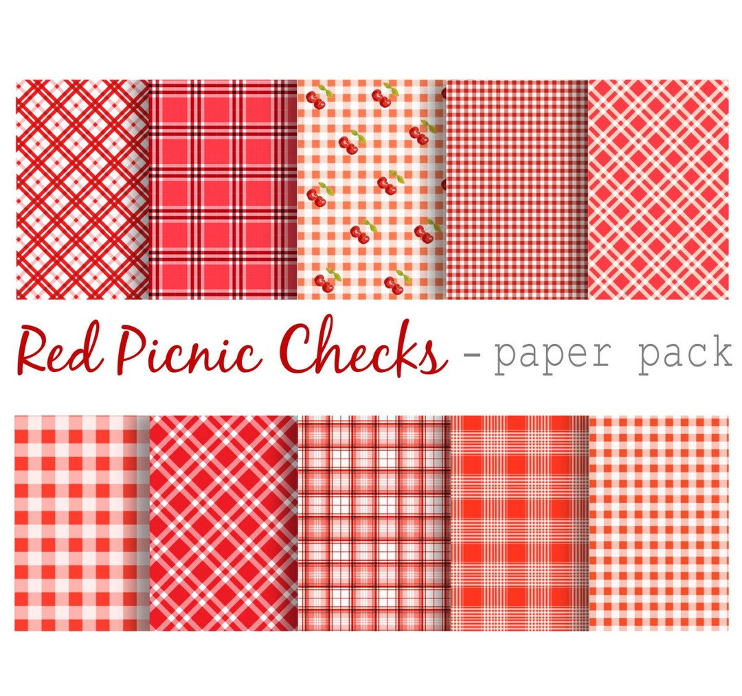 RED PICNIC CHECK Papers - Digital Paper Pack - 10 Red Check Plaid ...