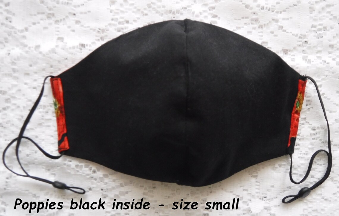 Red Poppies on Black Cotton Face Mask Adult Small Black Cotton Face ...