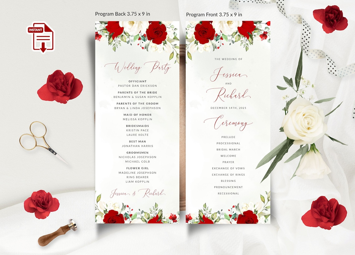 Red Wedding Program Template Download With Red Roses and Red - Etsy
