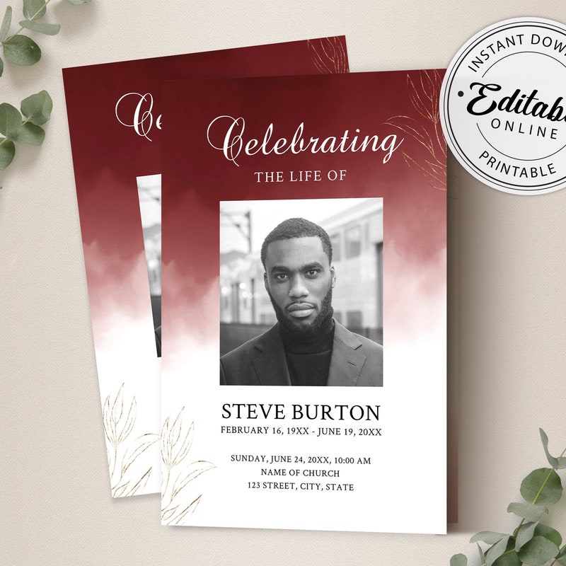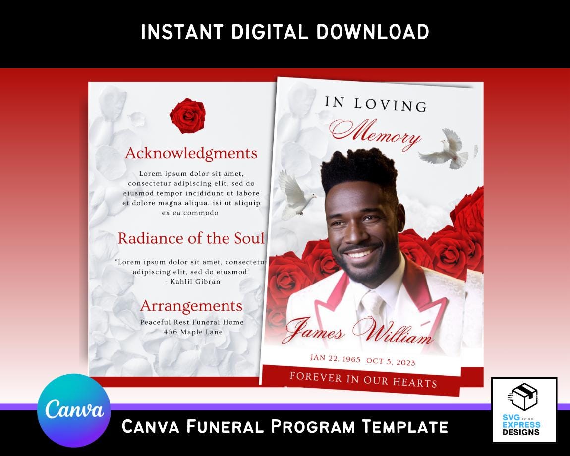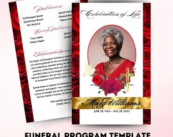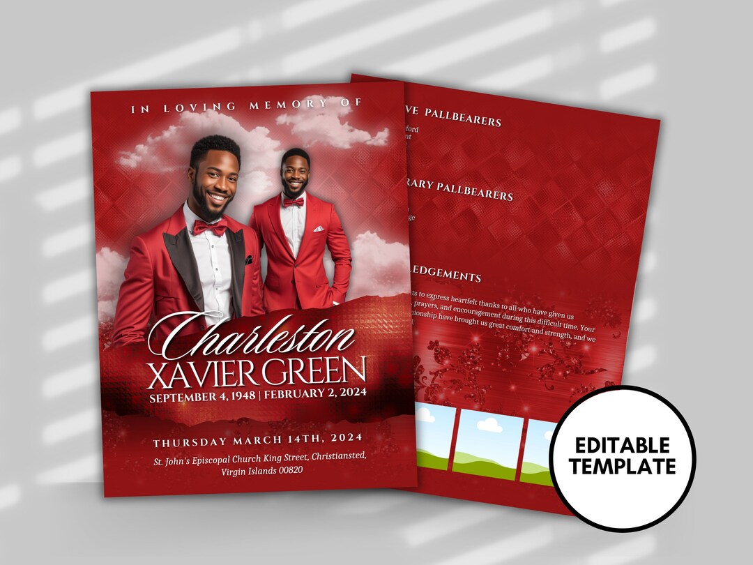 Red Funeral Program Template - Etsy