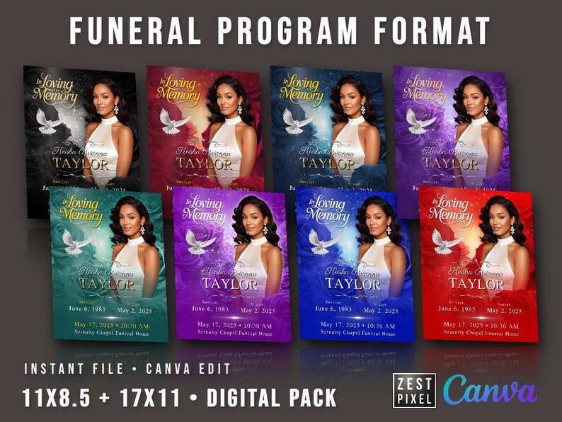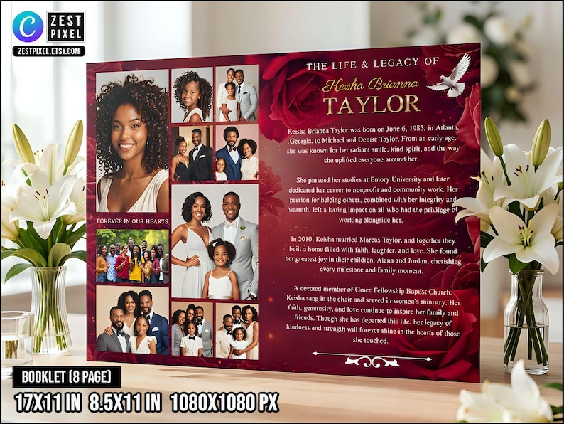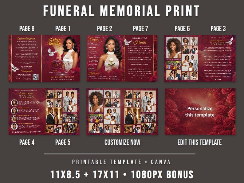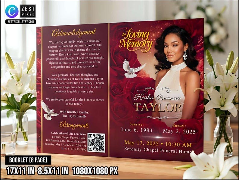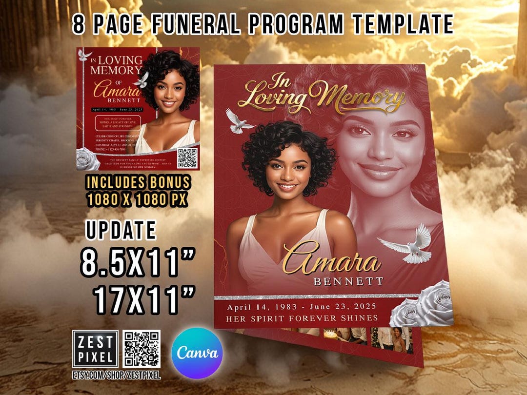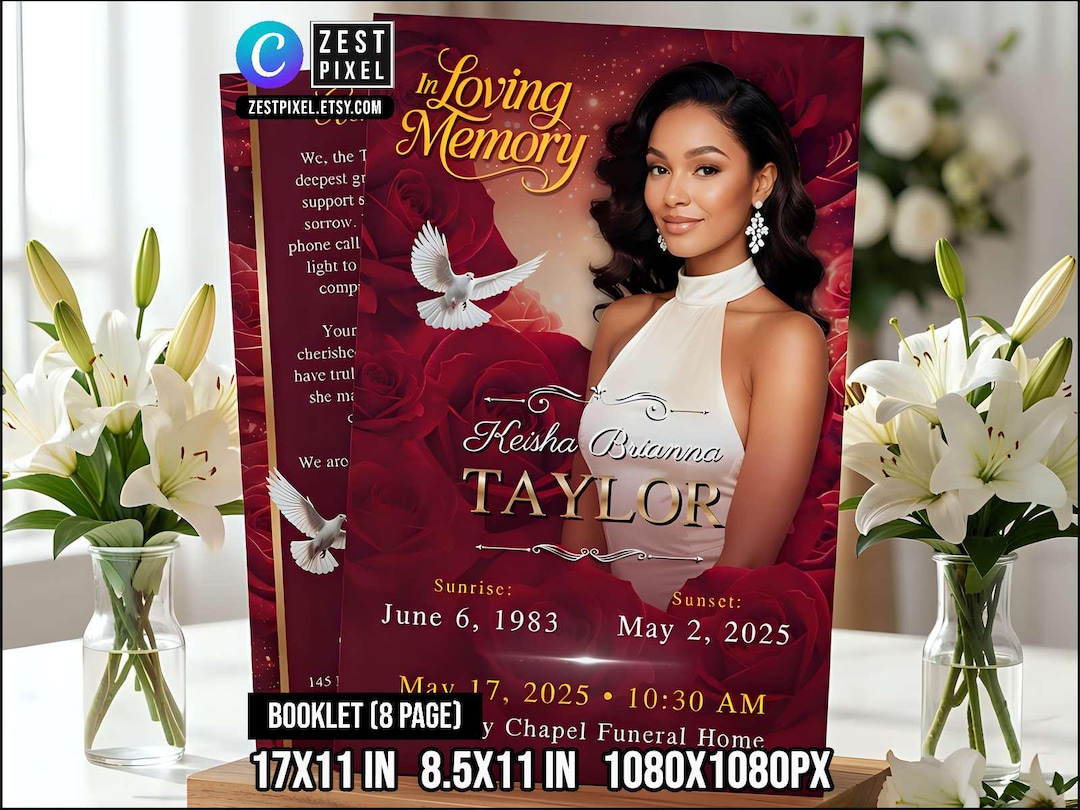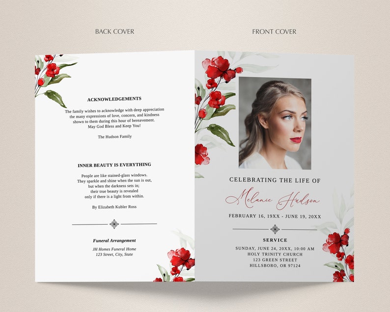 Red Glamour Funeral Program Template: 2-page DIY Booklet (8.5x11) - Etsy