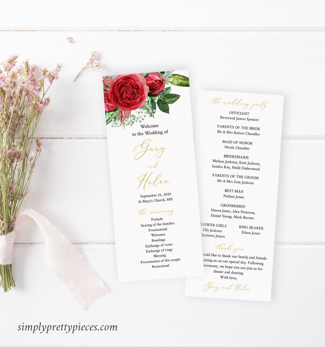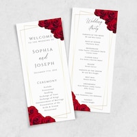Wedding Program Template, Red Rose Wedding Order of Service, Tall ...