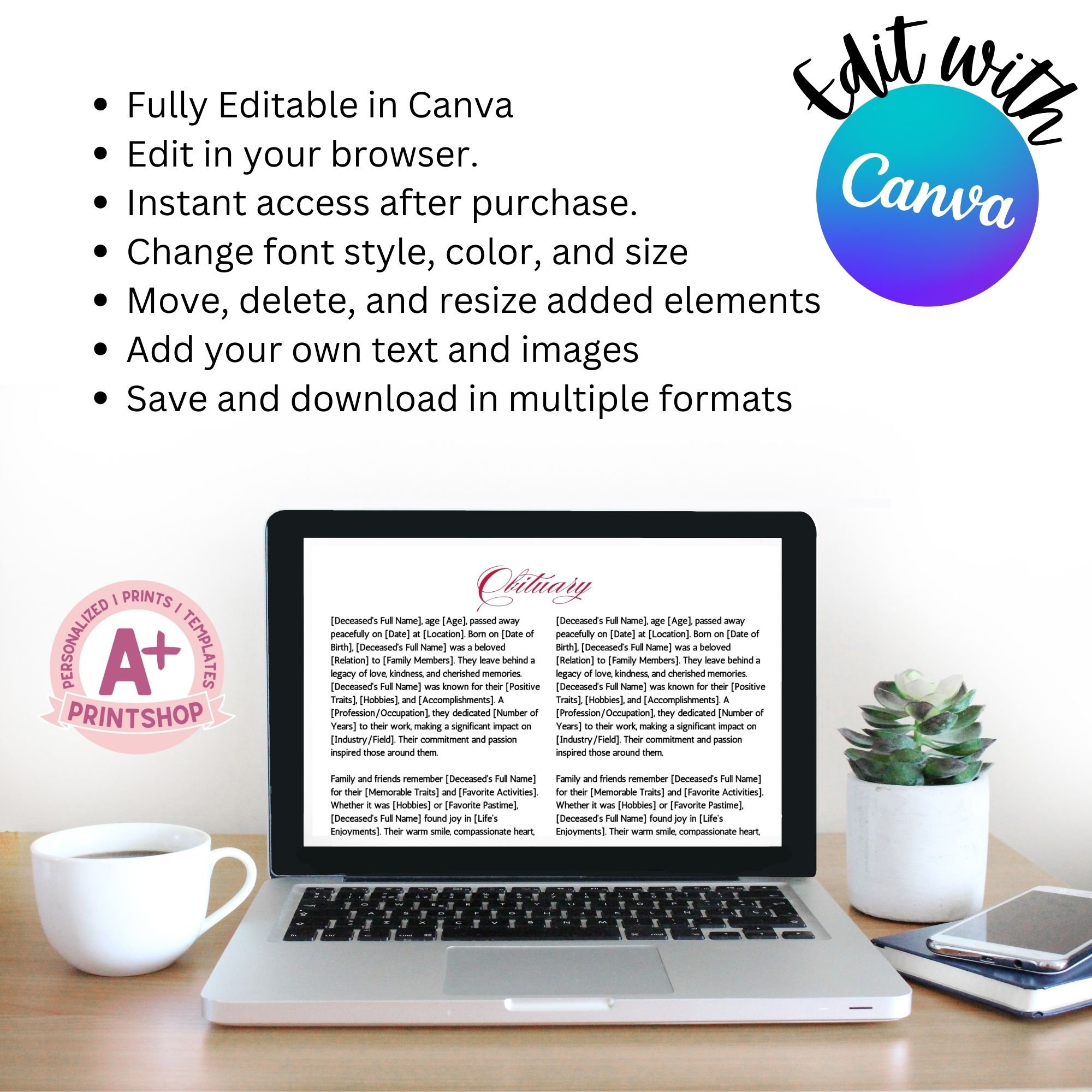 Red Funeral Program Template Red Obituary Template Instant Download ...