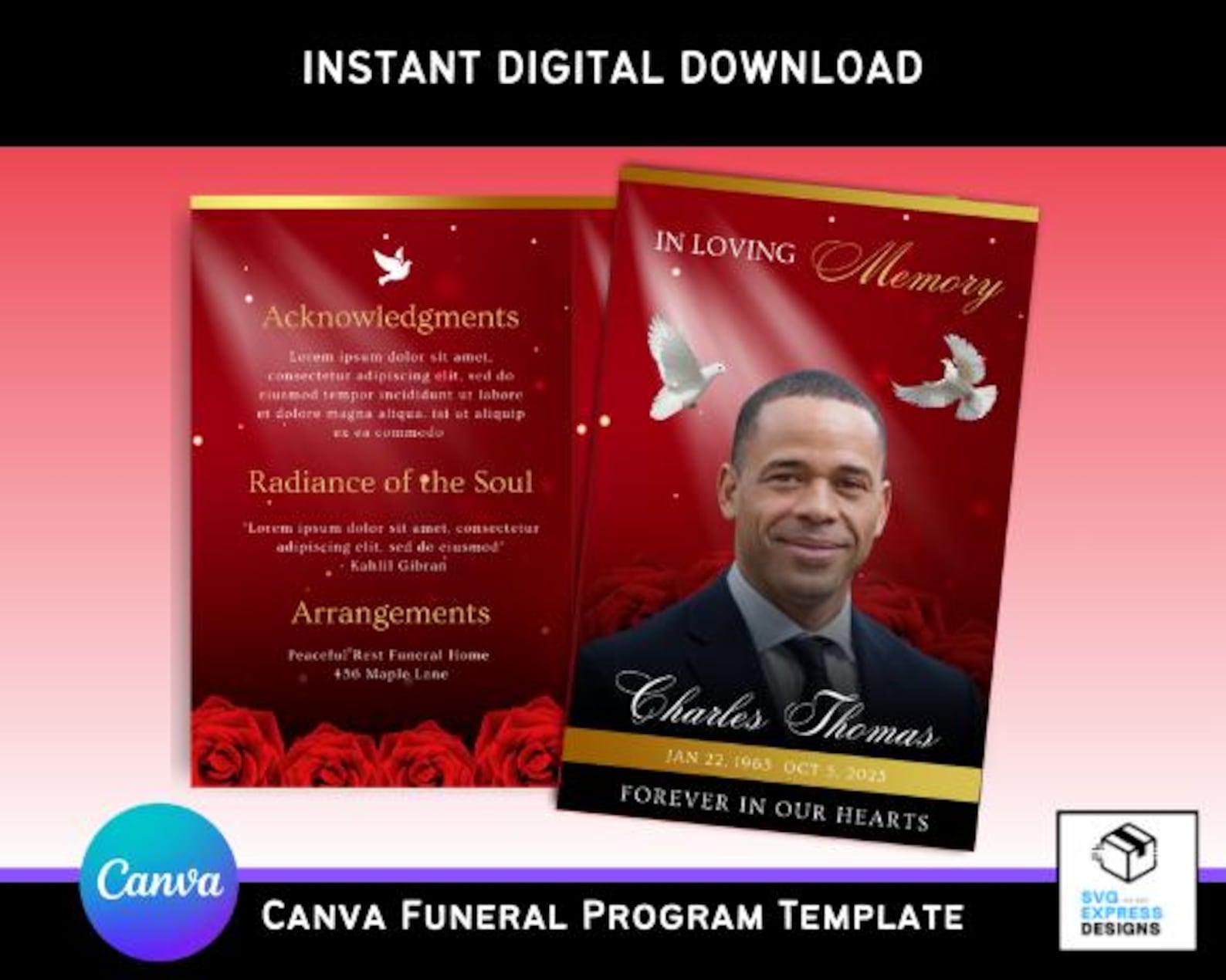 Red Funeral Memorial Program Template Afbeelding door Design Store ...