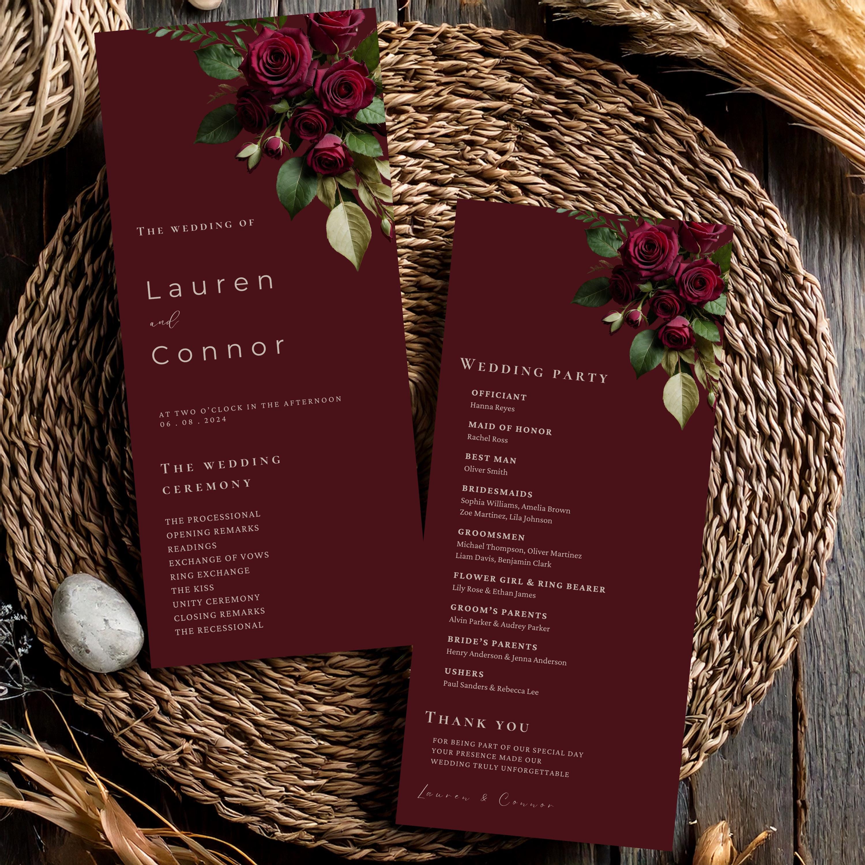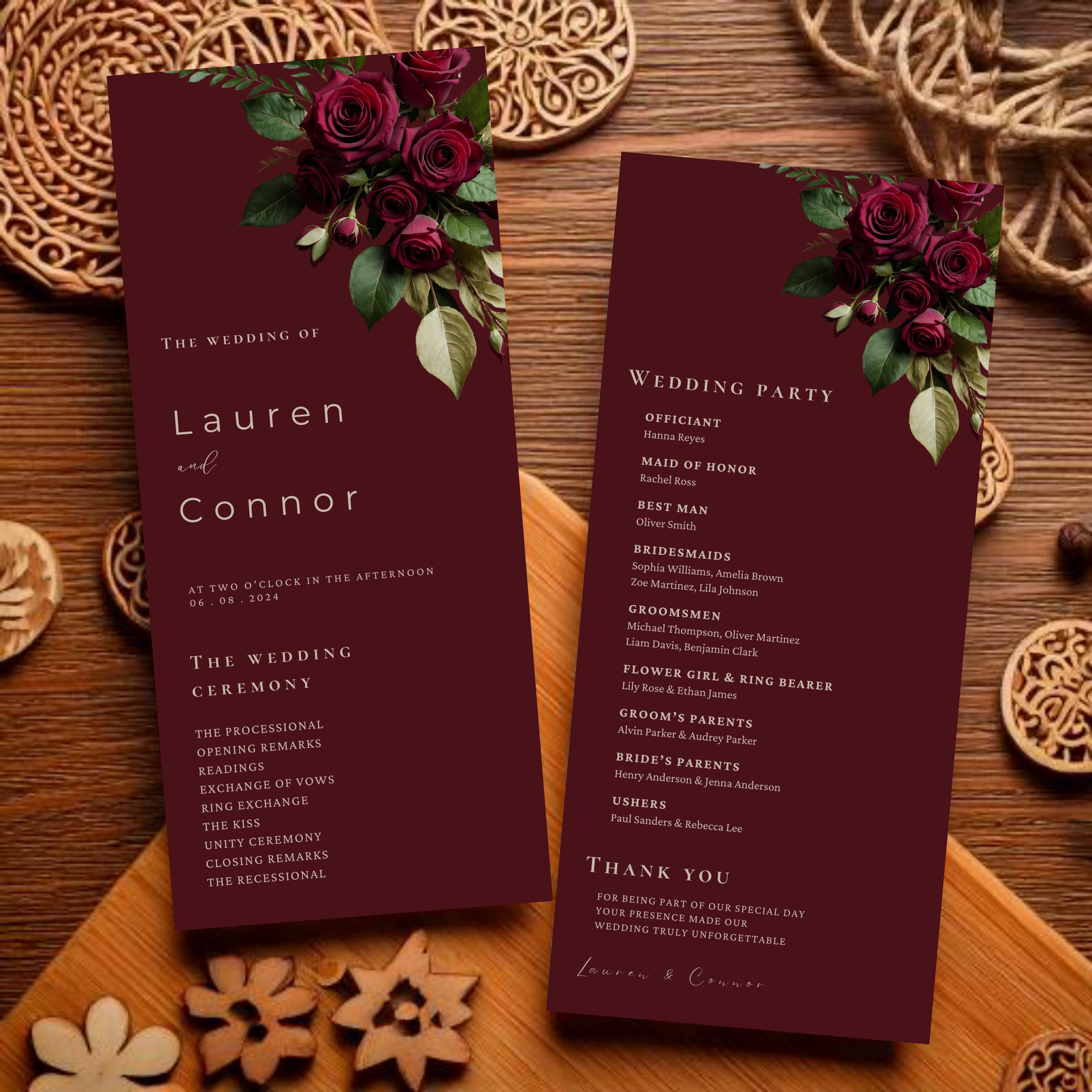 Burgundy Wedding Programs Template, Ceremony Program, Red Elegant Rose ...