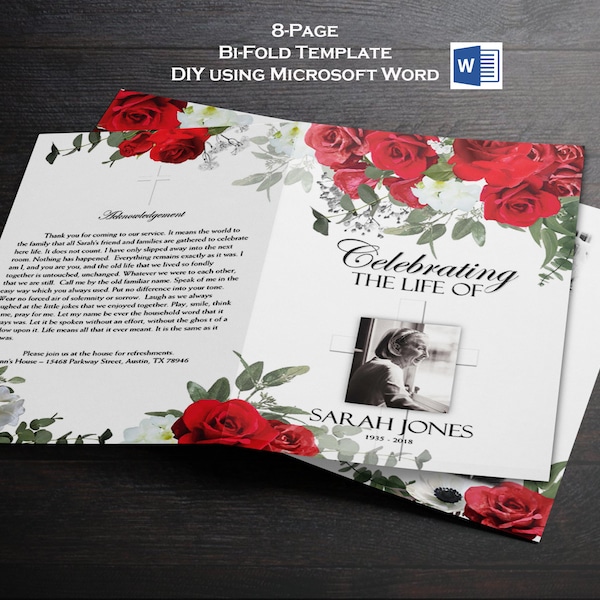DIY Red Roses Funeral Program Template – Funeral Program-Site Funeral ...