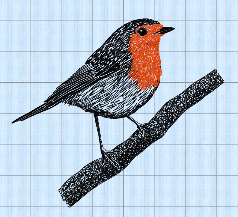 Robin Red Breast Machine Embroidery File, Sketched Style. Two Colour, 5 ...