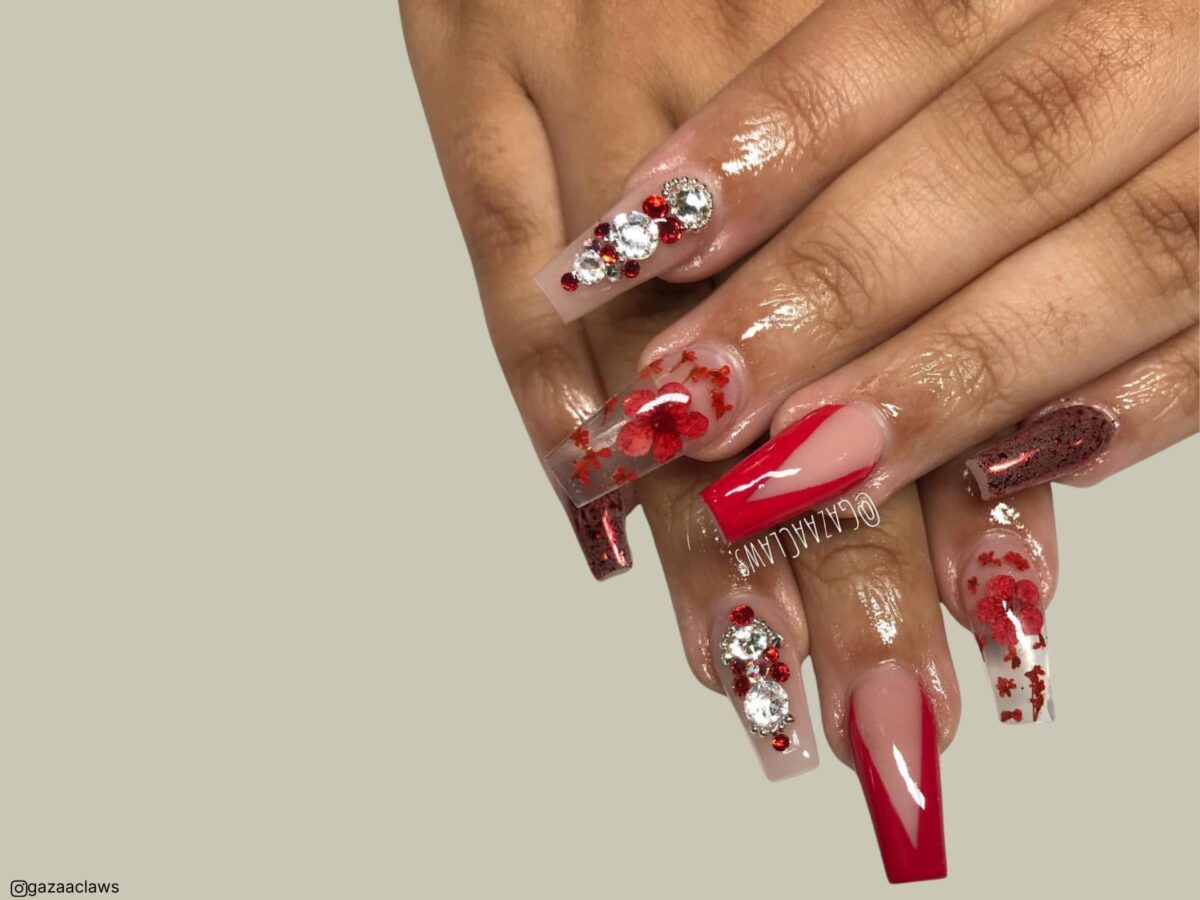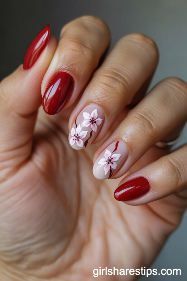 Cherry Blossom themed Red nails | Manicura de uñas, Manicura, Uñas ...