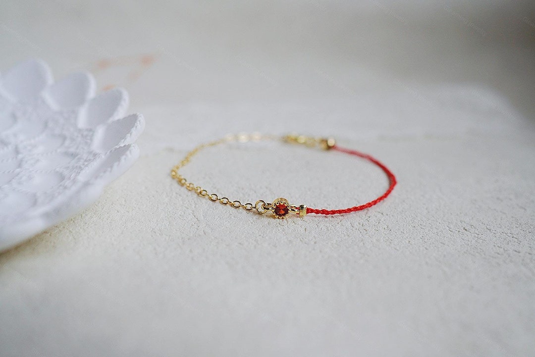 Red String Chain Bracelet With Red Gemstone, Lucky Red Thread for Women ...