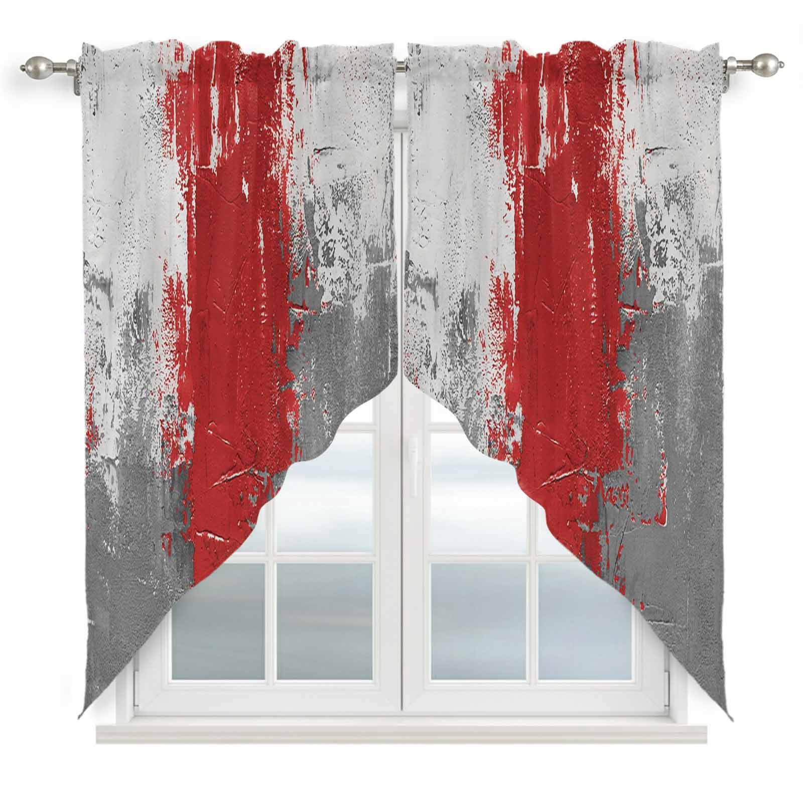Abstract Art Swag Curtain Valance for Window 2 Panels Red Grey Wall ...