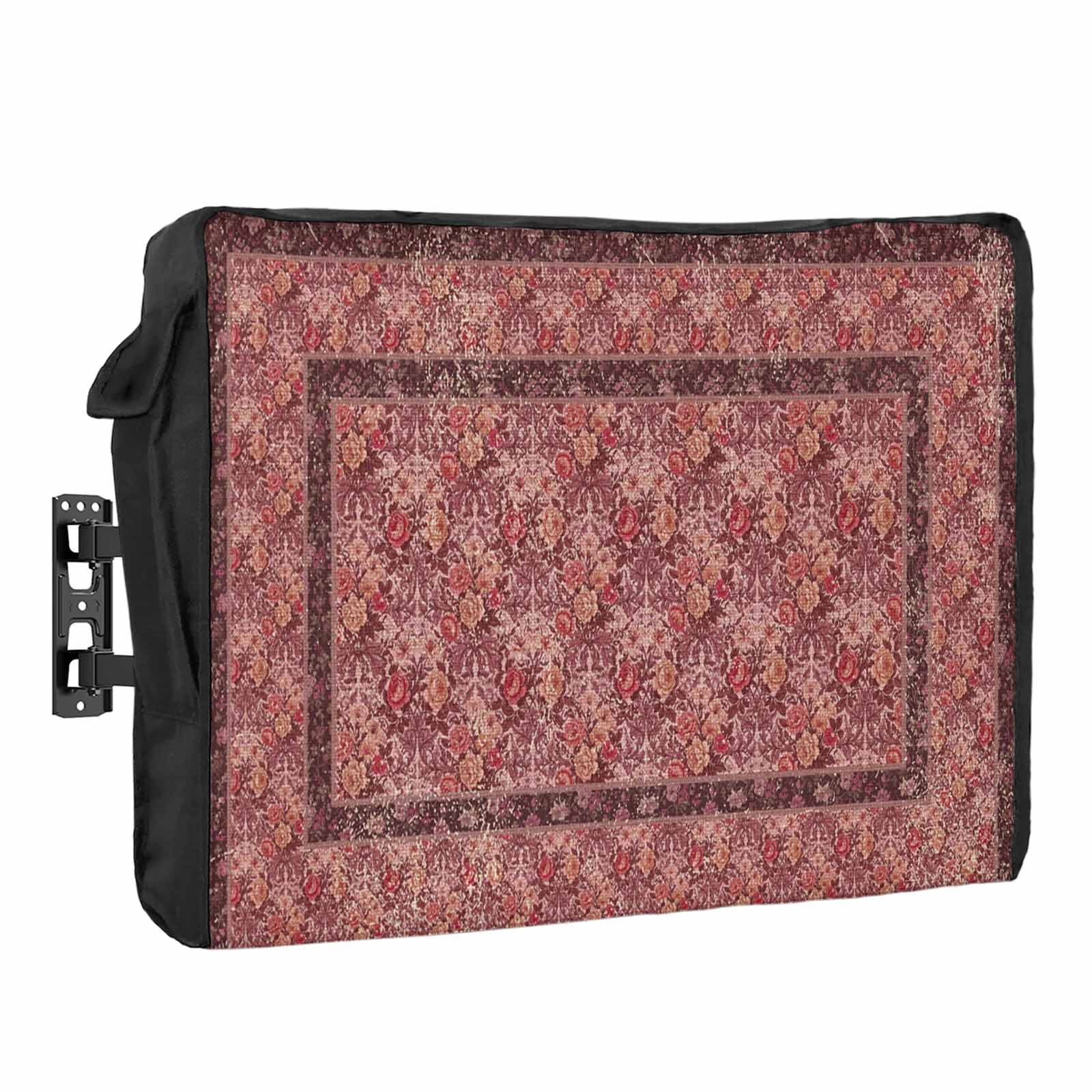 Bohemian Waterproof Outdoor TV Cover, Dark Red Vintage Flowers Texture ...
