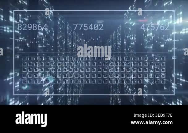 Animation of data processing over red and black background. Global data ...