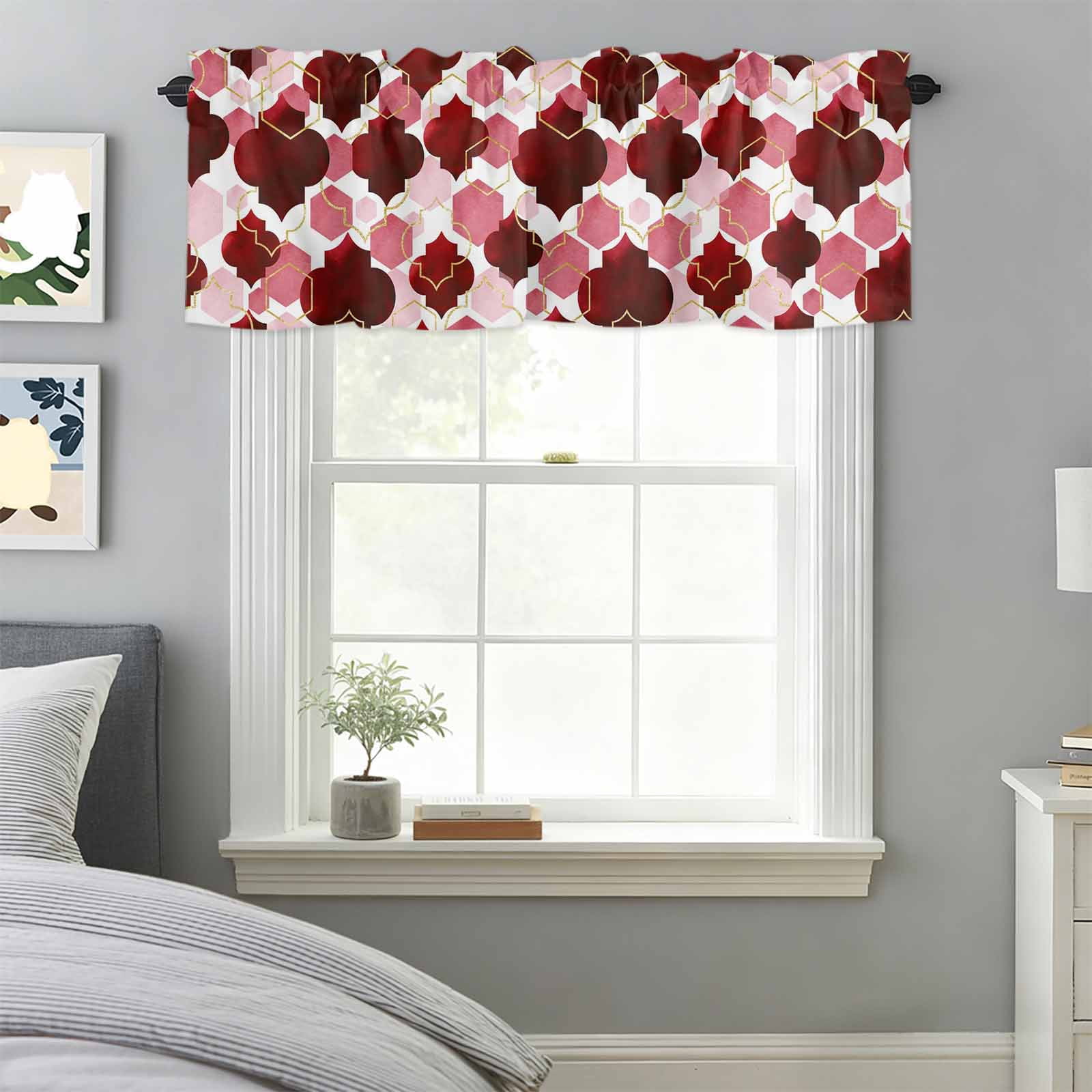 Burgundy Red Moroccan Texture Valances for Windows,Kitchen Valance Rod ...