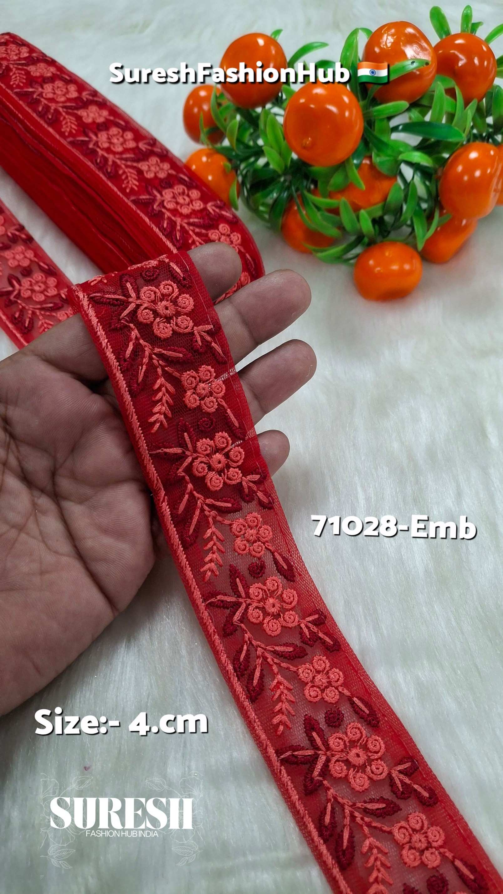 Red Floral Thread And Stone Work Embroidered Border at Rs 552.00 ...