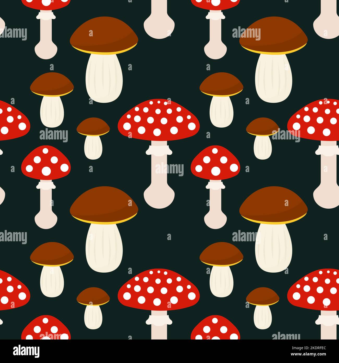 Forest mushroom dark seamless pattern. Red toadstools and boletes ...