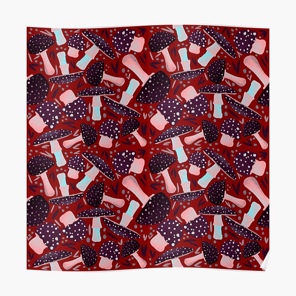 "Autumnal toadstool pattern in black and red" Poster for Sale by ...