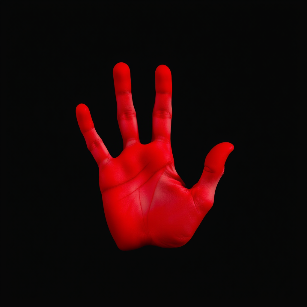 Vivid Red Hand Silhouette Against a Dark Background: A Striking Contrast