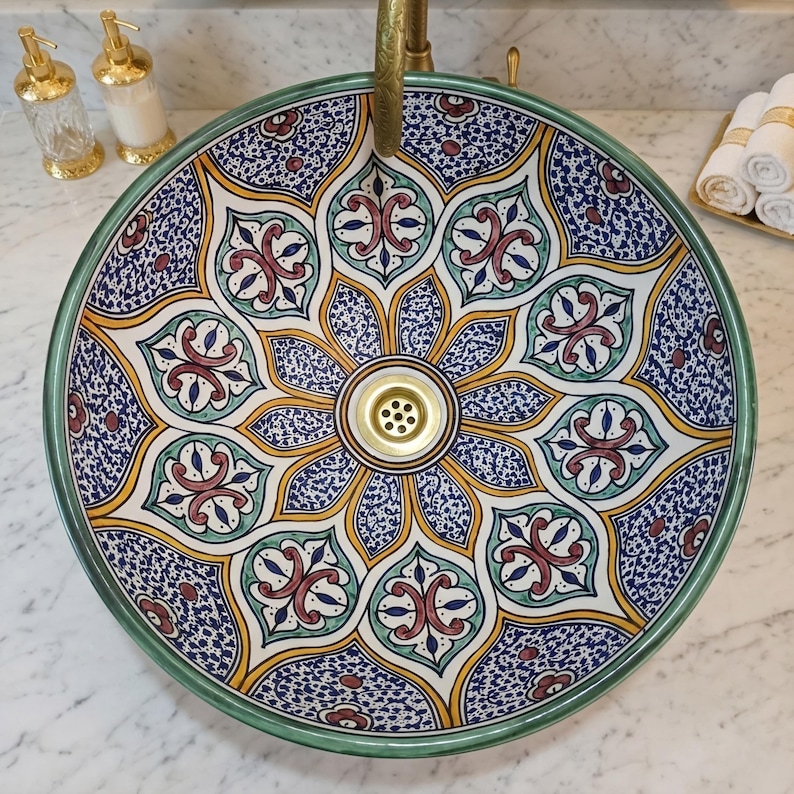 Handmade Moroccan Ceramic Vessel Sink, Round Hand-painted Bathroom ...