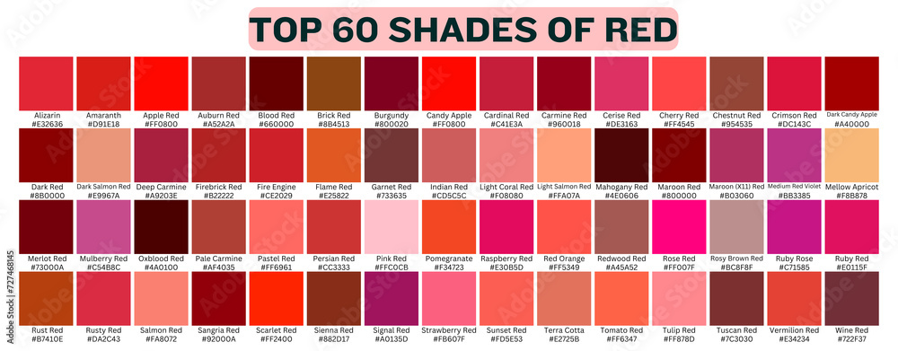 134 Shades Of Red Color With Names, Hex, RGB, CMYK Codes, 53% OFF