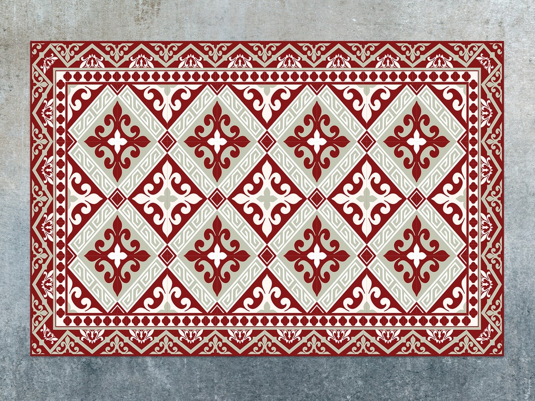 Pattern Gothic Red Vinyl Mat, Red Vinyl Rug, Gray Linoleum Rug, Tile ...