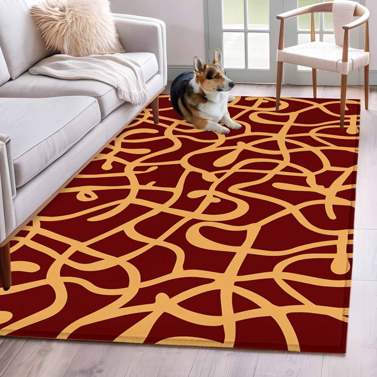 Abstract Line 4'x6' Area Rugs Retro Pattern Orange Wave Line Art Red ...