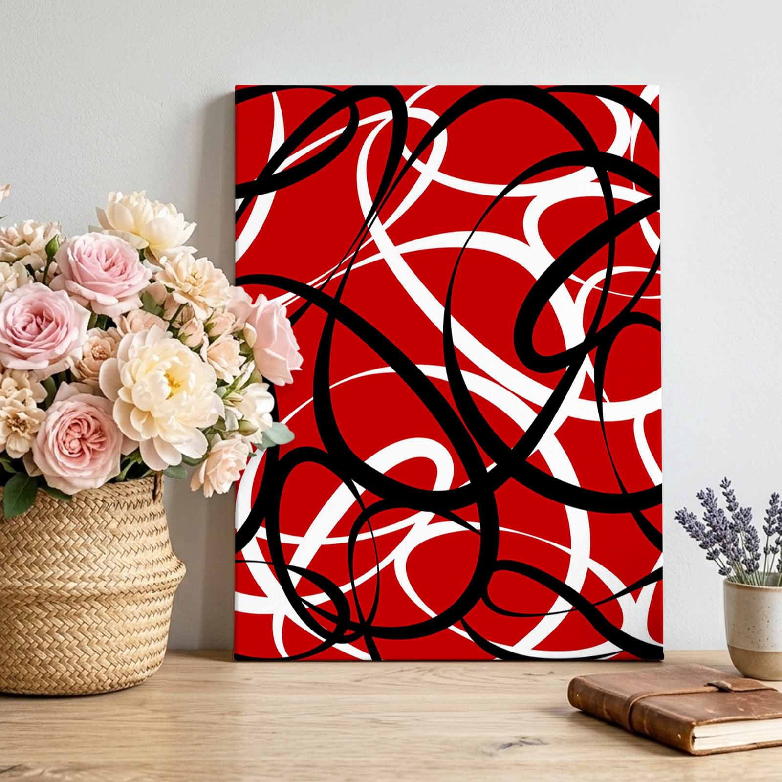 Canvas Wall Art Abstract Wave Line Canvas Art Print Black White Red ...