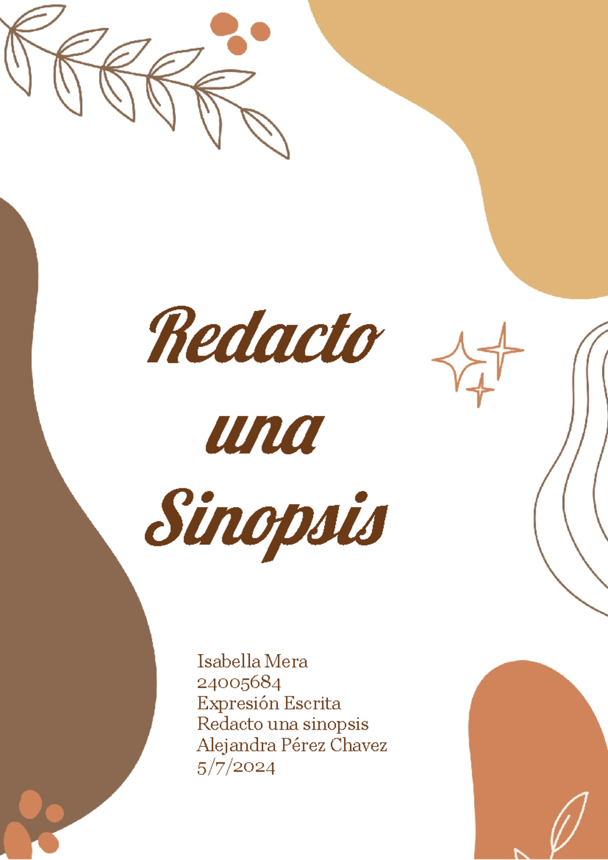 Sinopsis - expresion escrita - Redacto una Sinopsis Nombre: Matricula ...