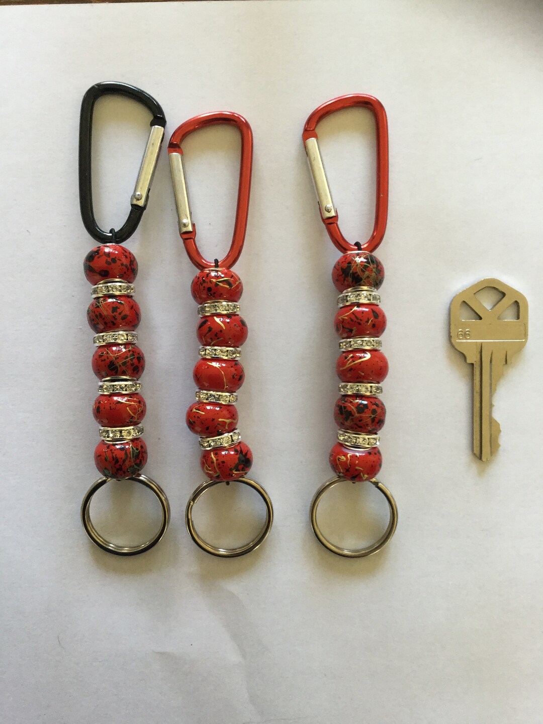 Handmade Red With Black Beaded Keychain With Easy Carabiner Clip - Etsy