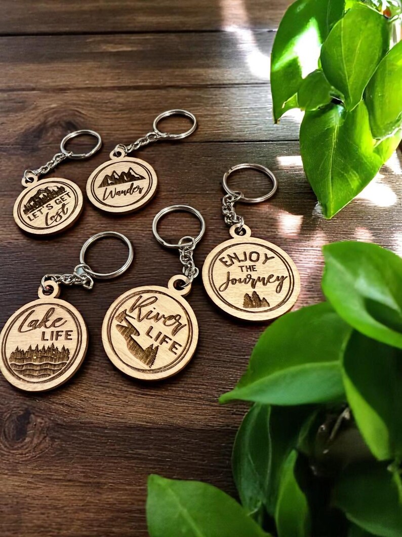 Rustic Laser-engraved Wood Keychains: Adventure Gifts for Outdoor ...