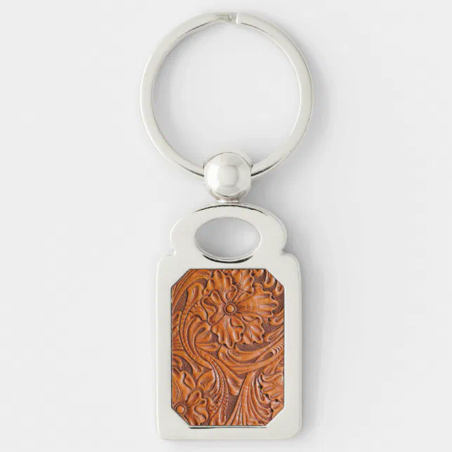 Cowboy Rustic western country tooled leather print Keychain | Zazzle