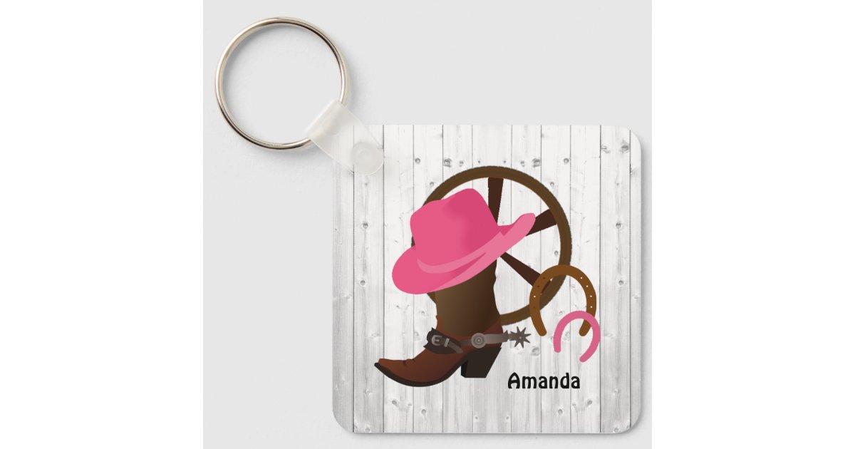 Cowgirl Personalized Rustic Keychain | Zazzle