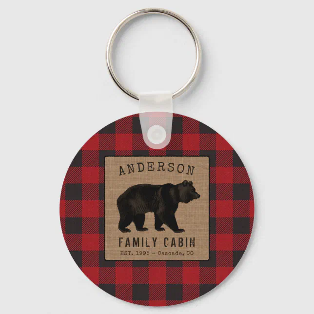 Rustic Bear Family Cabin Red Buffalo Plaid Round Keychain | Zazzle