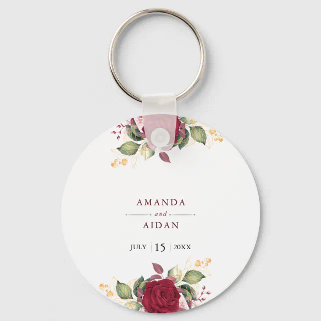 Rustic Burgundy Red Floral Romantic Wedding Keychain | Zazzle