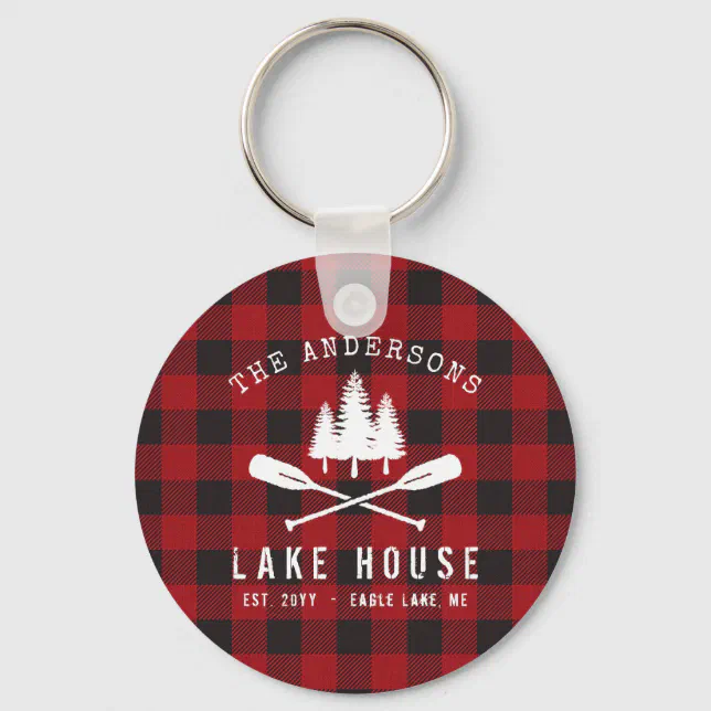 Rustic Country Lake House Tree Red Buffalo Plaid Keychain | Zazzle