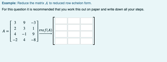 Solved Example: Reduce the matrix A to reduced row echelon | Chegg.com