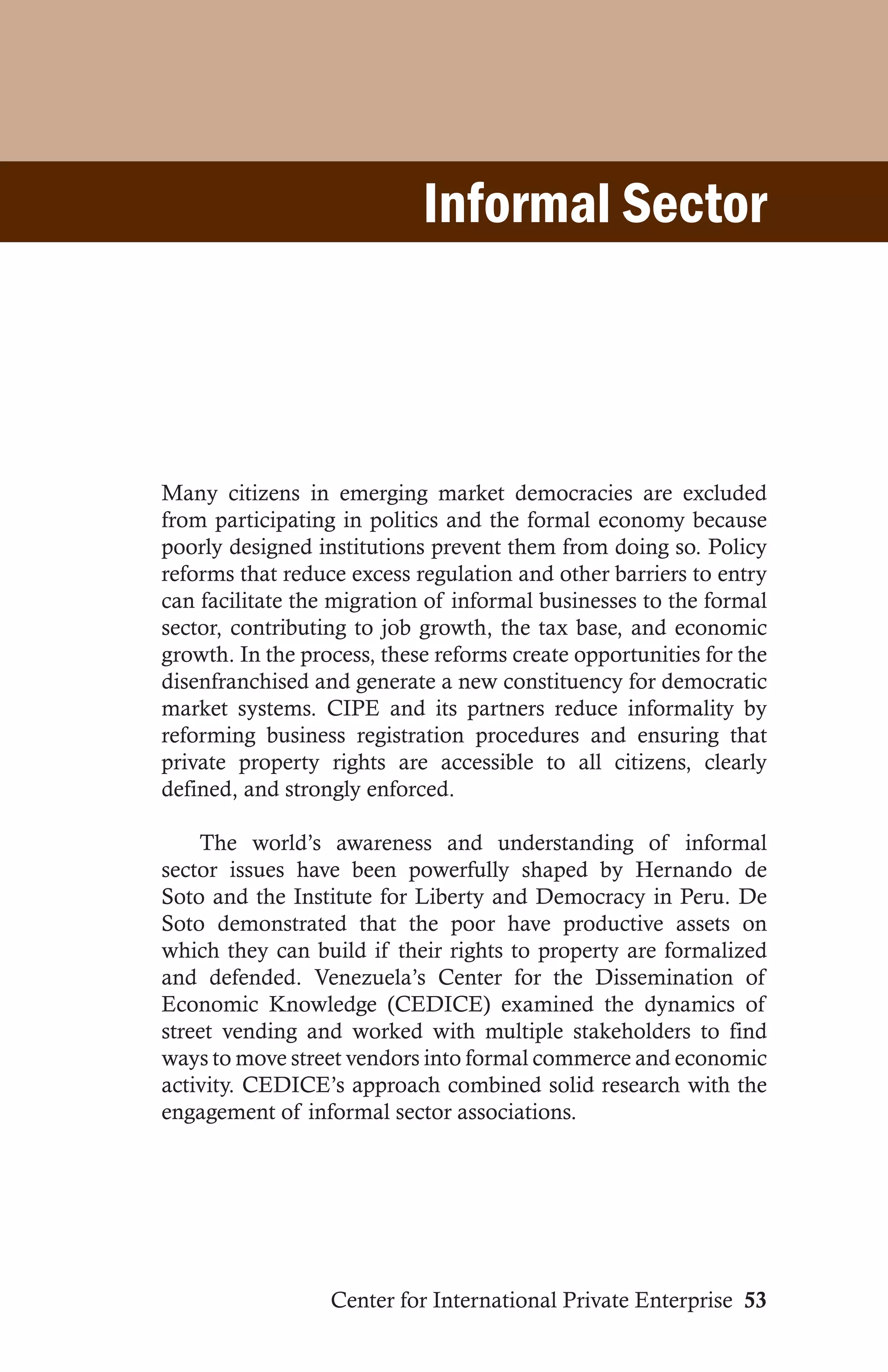 Opportunities to Reduce Economic Informality - Center for International ...